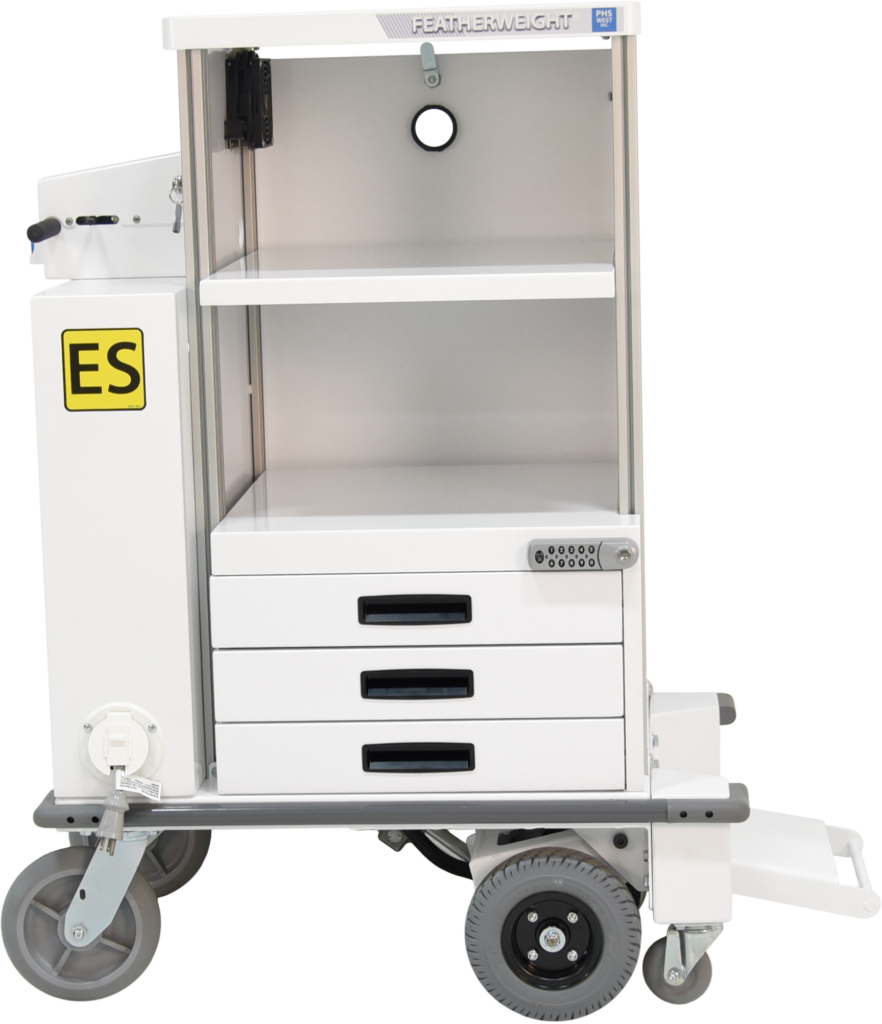 With a motorized service cart, any one staff member can safely move all the necessary equipment and tools for maintenance within data centers with zero push or pull force injury risk. Bolster productivity by eliminating the need for multiple staff members or trips to complete this task. Hitch an Ergo-Express® Lifter to your cart to ensure you have the ergonomically correct height and positioning for adjusting components.